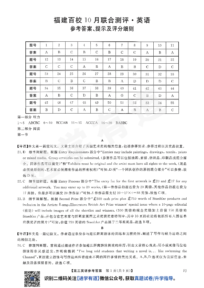 福建省百校2026届高三上学期10月联合测评 英语答案.pdf