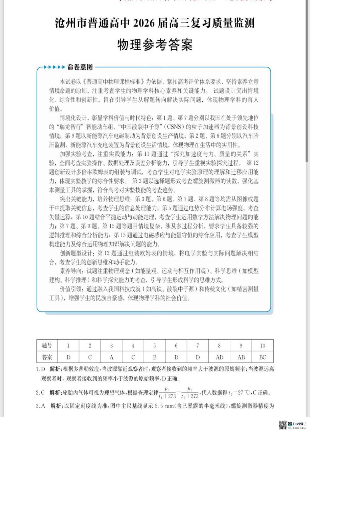 河北省沧州市普通高中2026届高三复习质量检测 物理答案.pdf