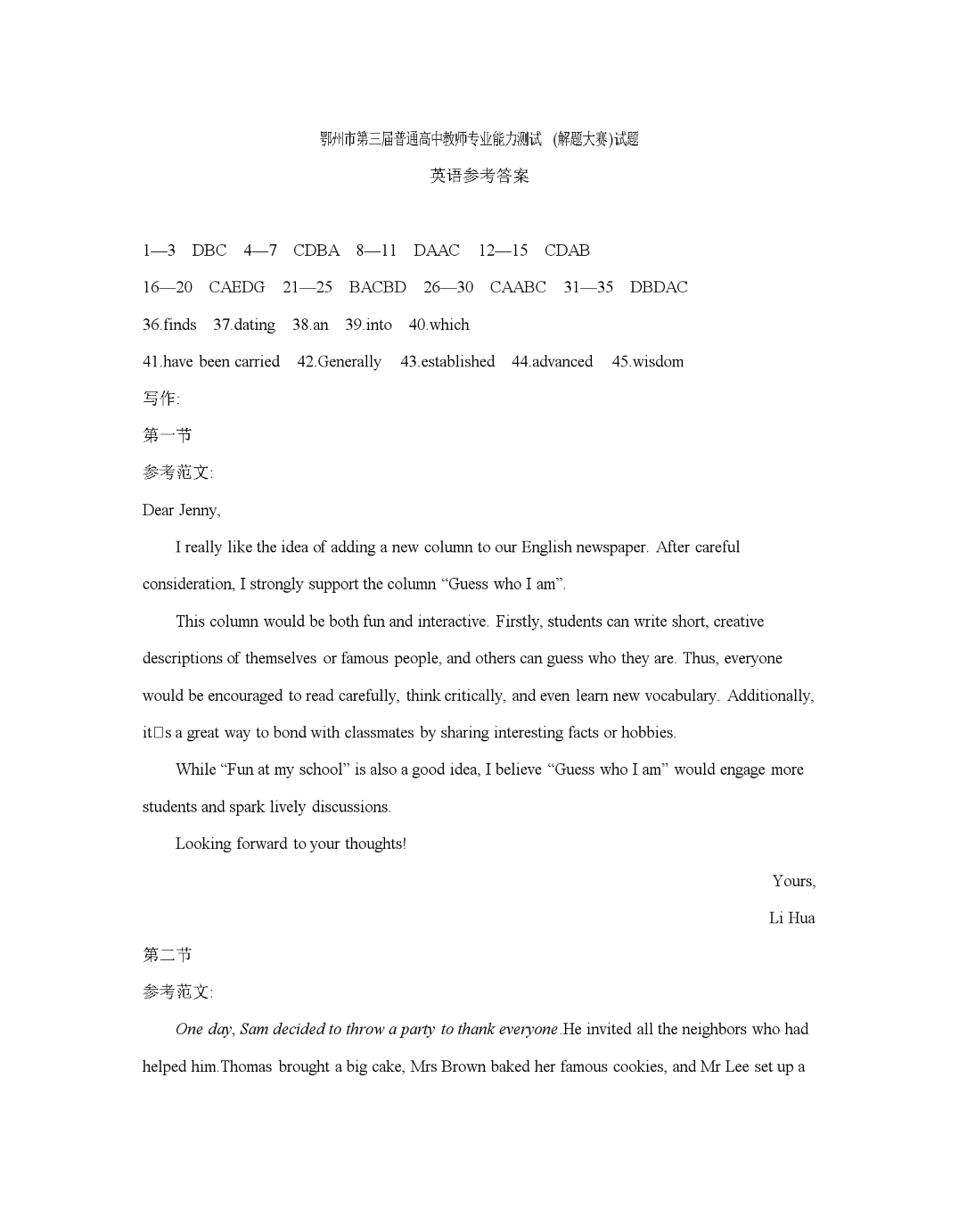 鄂州市2026届高三上学期第三届普通高中教师专业能力测试(解题大赛) 英语答案.pdf