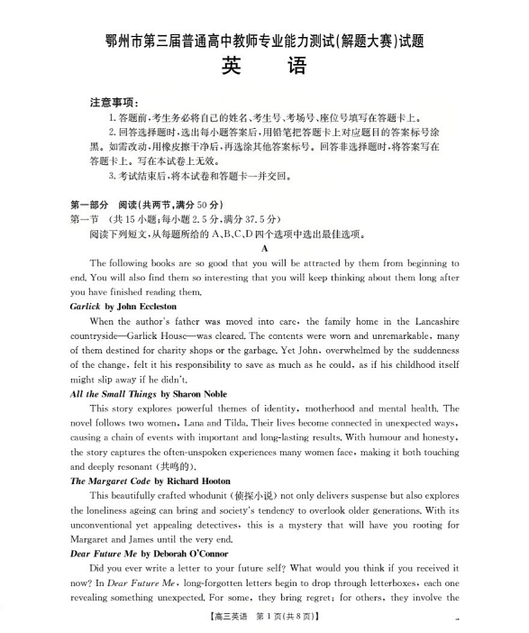 鄂州市2026届高三上学期第三届普通高中教师专业能力测试(解题大赛) 英语.pdf