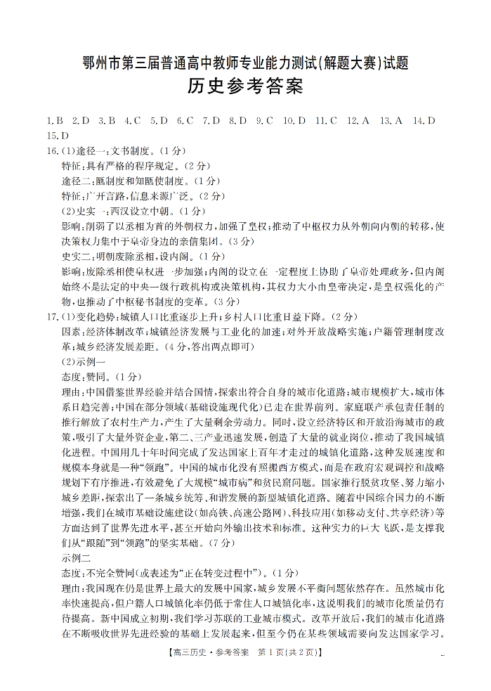 鄂州市2026届高三上学期第三届普通高中教师专业能力测试(解题大赛) 历史答案.pdf