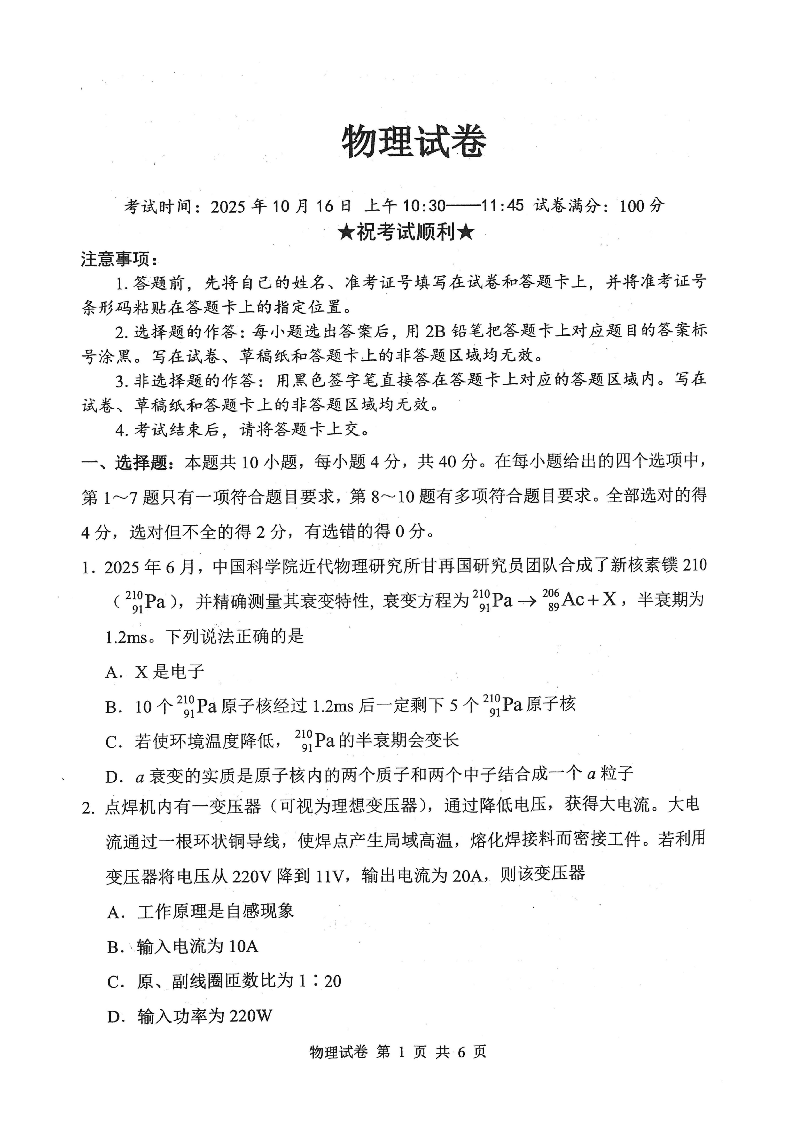 湖北省”腾·云“联盟2025年高三年级10月联考 物理.pdf
