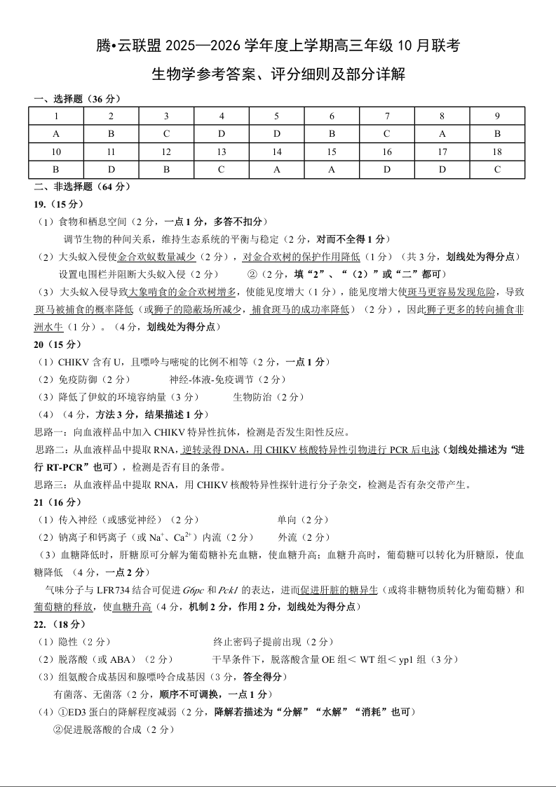 湖北省”腾·云“联盟2025年高三年级10月联考 生物答案.doc