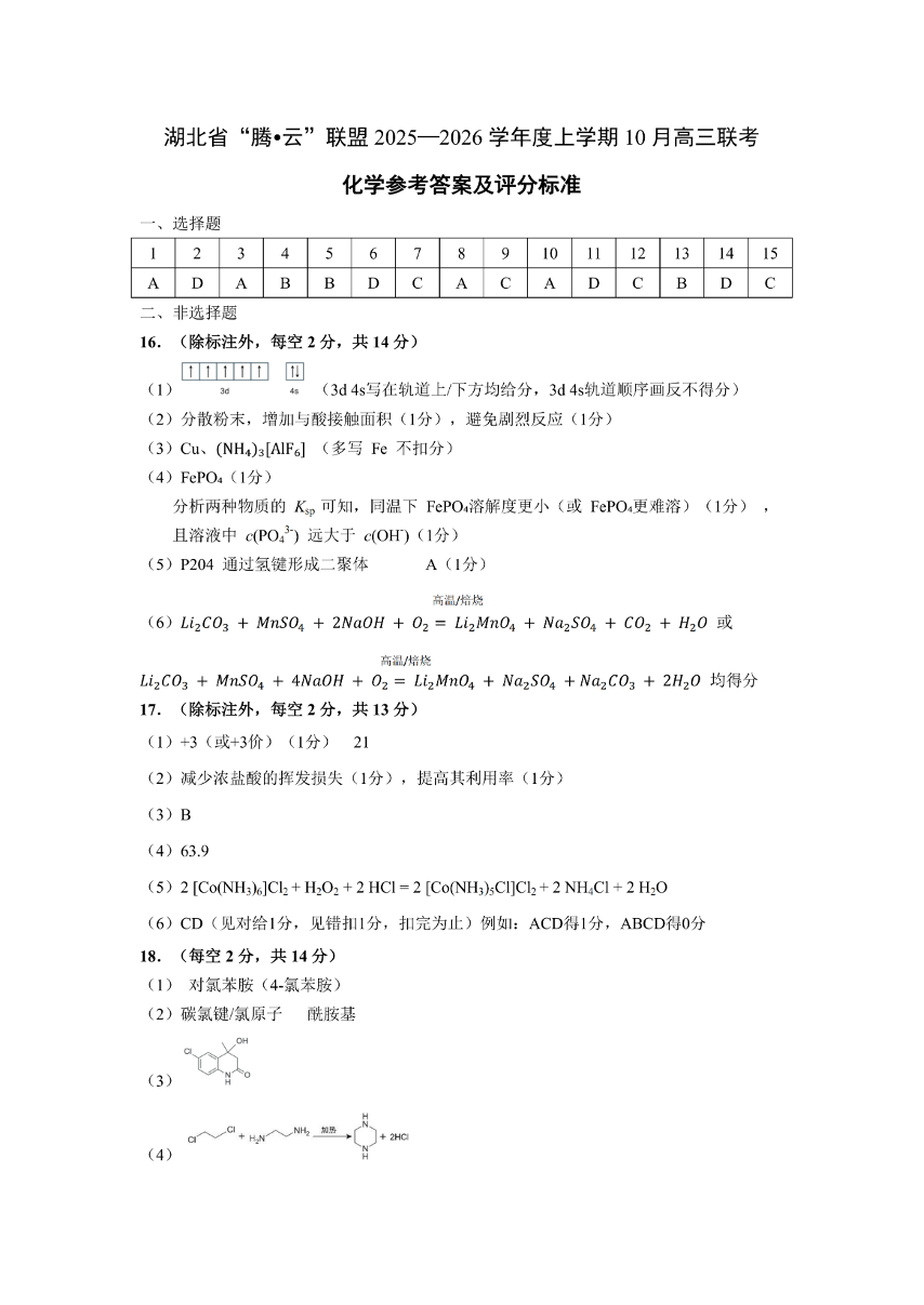 湖北省”腾·云“联盟2025年高三年级10月联考 化学答案.pdf