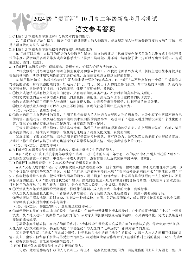 贵百河2025-2026学年高二上学期10月月考 语文答案.pdf