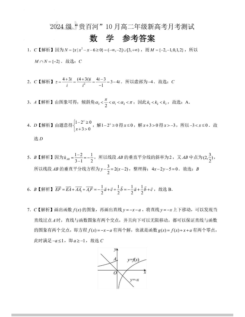 贵百河2025-2026学年高二上学期10月月考 数学答案.pdf