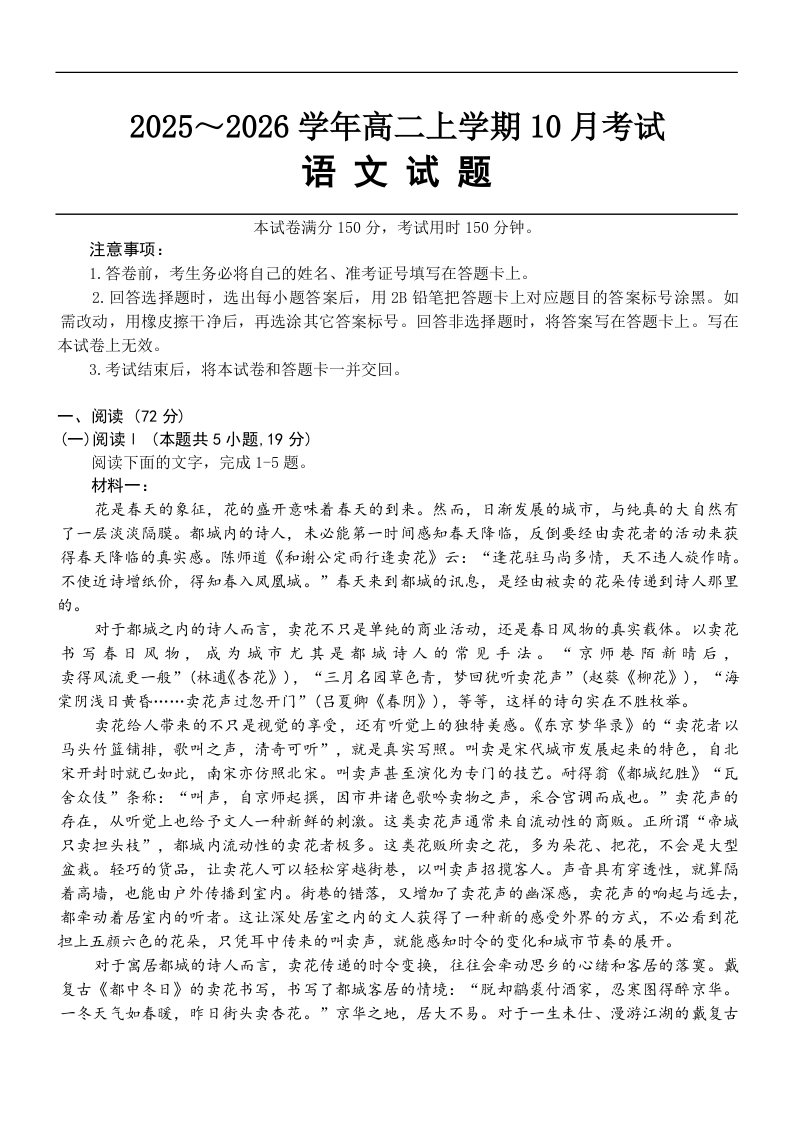 河北省保定市部分示范高中2025-2026学年高二年级10月月考 语文试题(含答案).docx