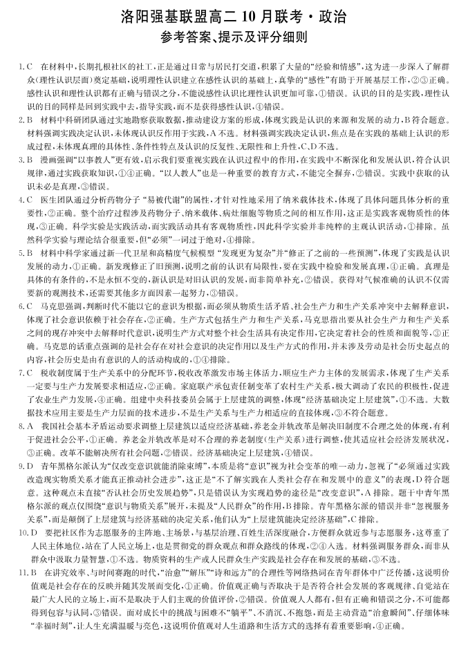 河南洛阳强基联盟2025-2026学年高二上学期10月联考 政治答案.pdf