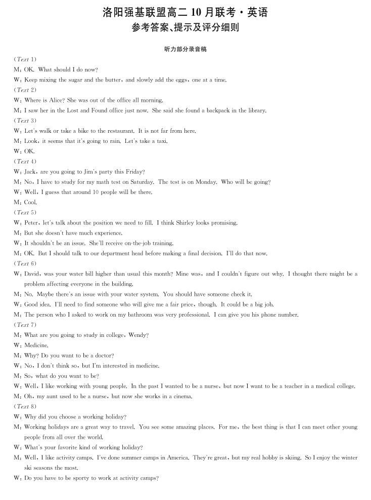 河南洛阳强基联盟2025-2026学年高二上学期10月联考 英语答案.pdf