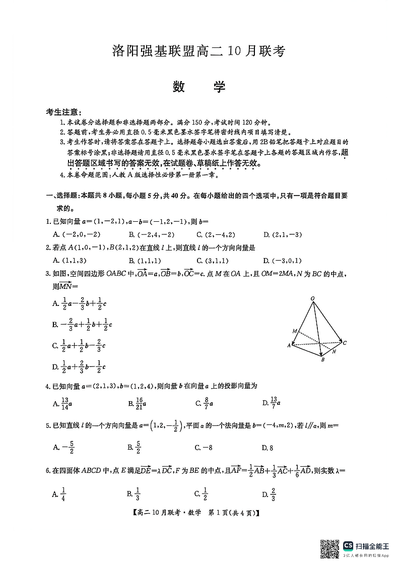 河南洛阳强基联盟2025-2026学年高二上学期10月联考 数学.pdf