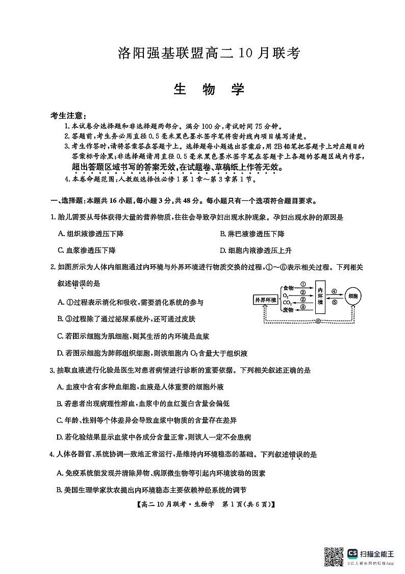 河南洛阳强基联盟2025-2026学年高二上学期10月联考 生物.pdf