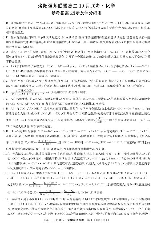 河南洛阳强基联盟2025-2026学年高二上学期10月联考 化学答案.pdf