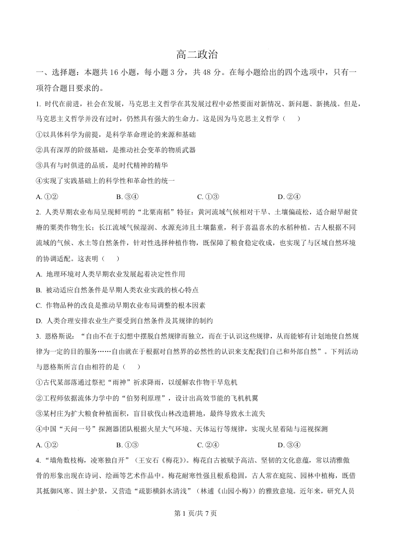 湖北省武汉市部分重点中学2025-2026学年高二上学期10月检测 政治.docx