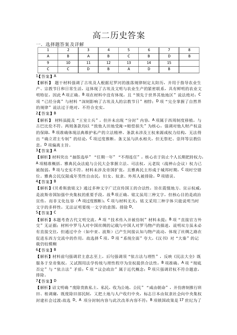 湖北省武汉市部分重点中学2025-2026学年高二上学期10月检测 历史答案.docx