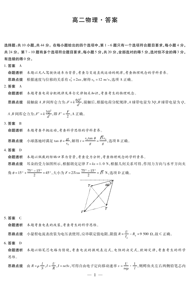 湖南省·天一大联考2025-2026学年高二上学期10月联考 物理答案.pdf