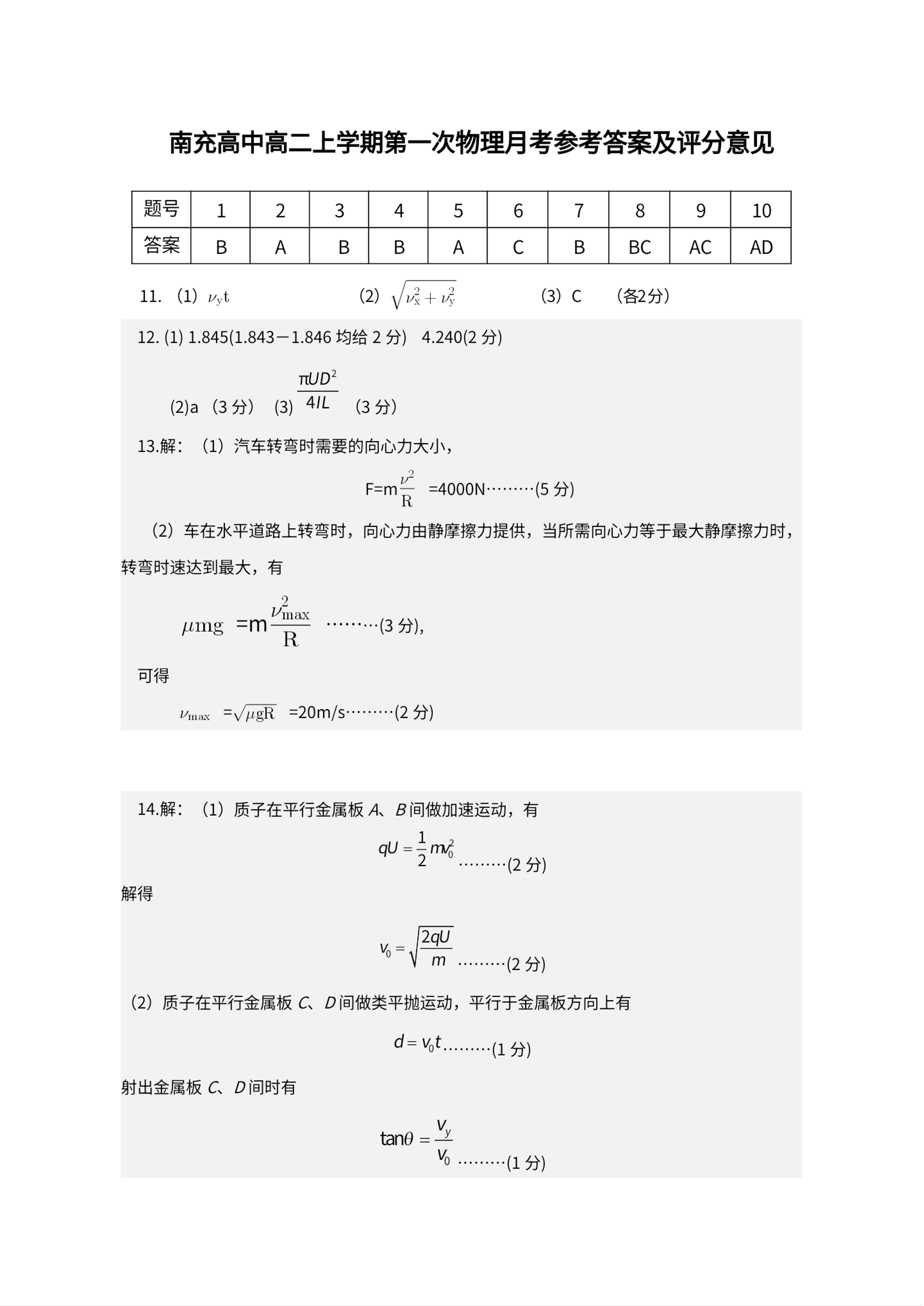 南充高中高2024级高二上学期第一次月考 物理答案.pdf
