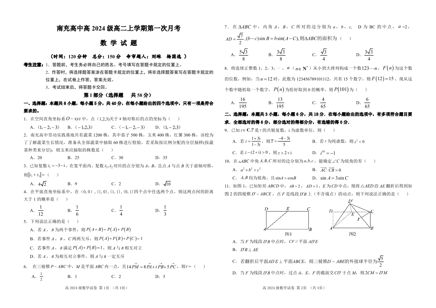 南充高中高2024级高二上学期第一次月考 数学.pdf