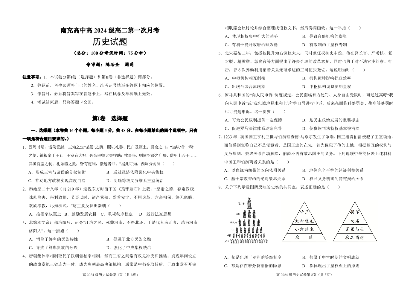 南充高中高2024级高二上学期第一次月考 历史.pdf