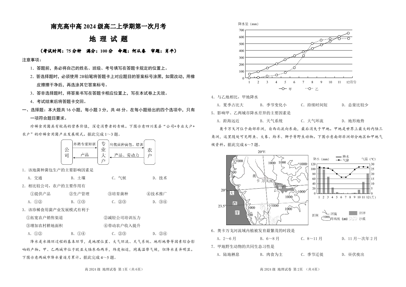 南充高中高2024级高二上学期第一次月考 地理.pdf