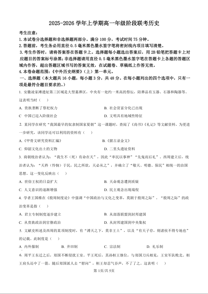 安徽省江淮名校2025-2026学年高一上学期10月阶段联考 历史.docx
