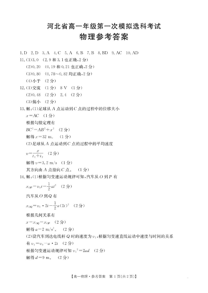 河北省保定市部分高中2025-2026学年高一上学期10月月考 物理答案.pdf