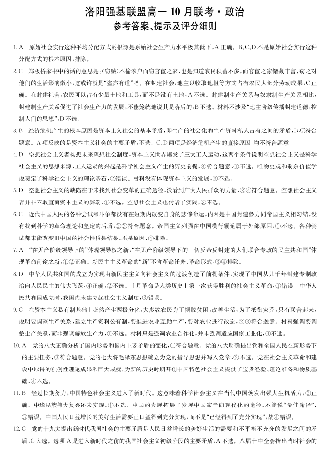 河南洛阳强基联盟2025-2026学年高一上学期10月联考 政治答案.pdf
