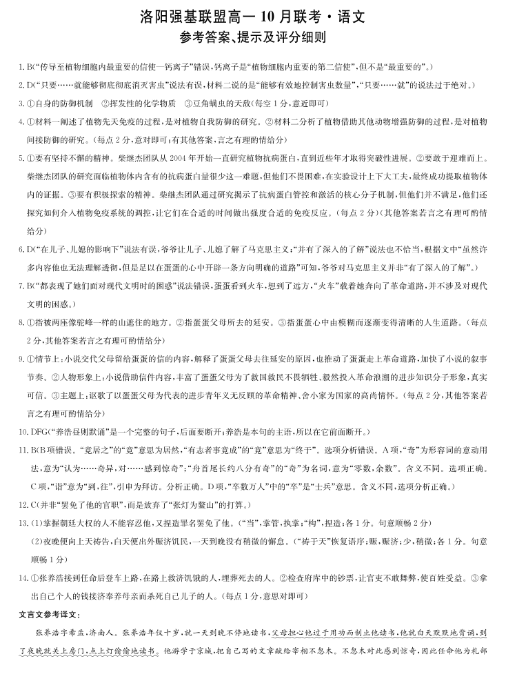 河南洛阳强基联盟2025-2026学年高一上学期10月联考 语文答案.pdf