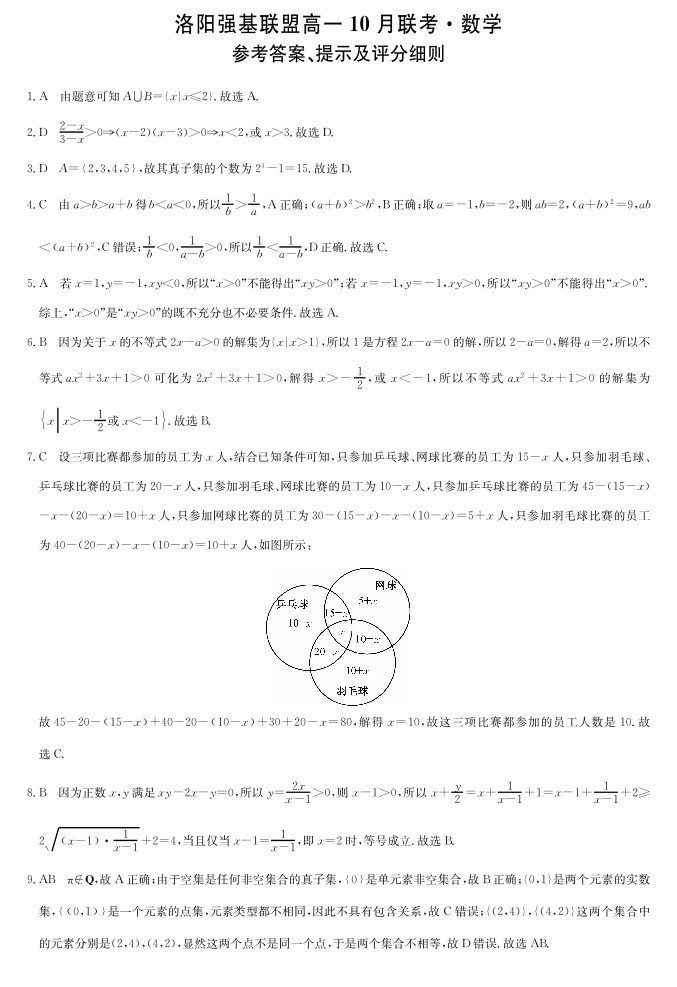 河南洛阳强基联盟2025-2026学年高一上学期10月联考 数学答案.pdf