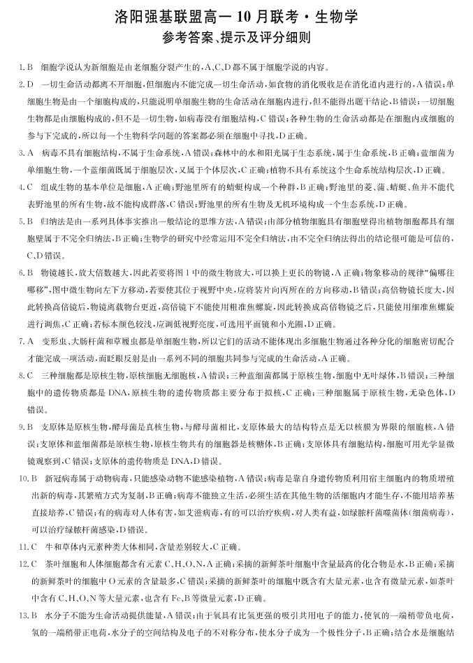 河南洛阳强基联盟2025-2026学年高一上学期10月联考 生物答案.pdf