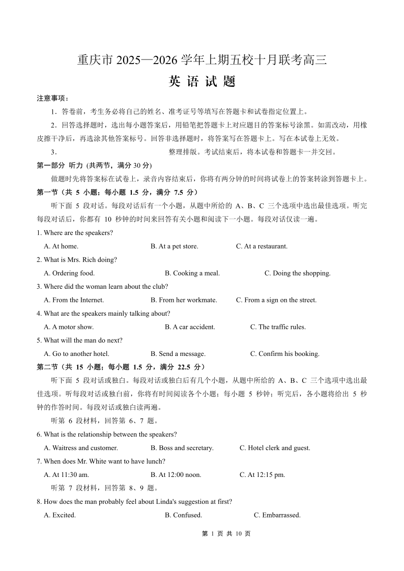 2025-2026学年上期五校十月联考 英语.pdf
