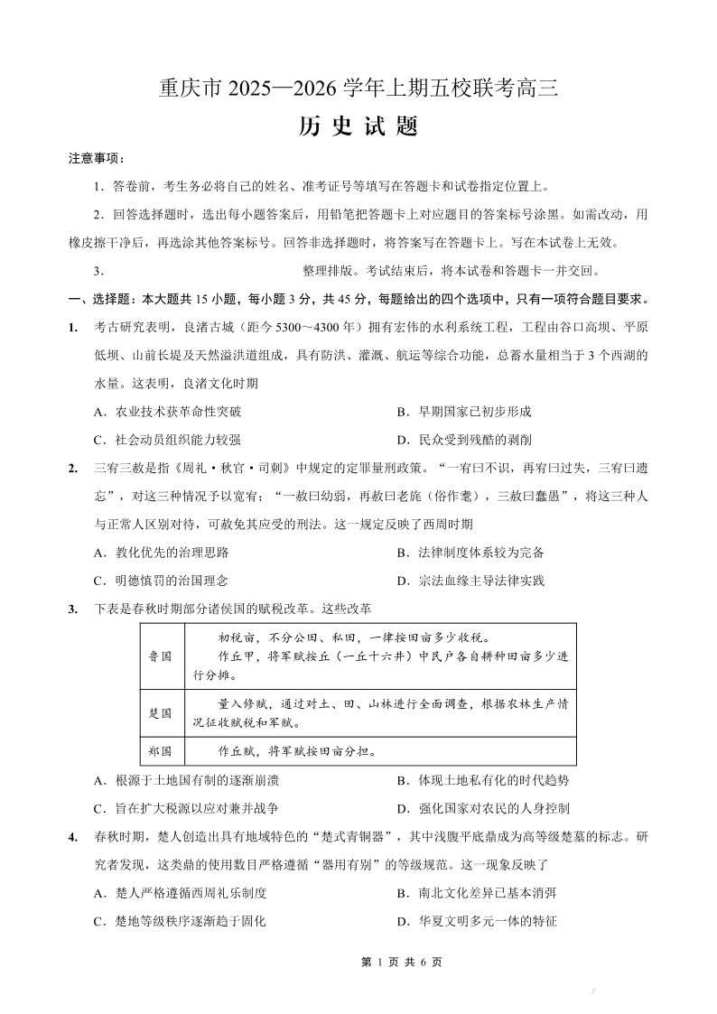 2025-2026学年上期五校十月联考 历史.pdf