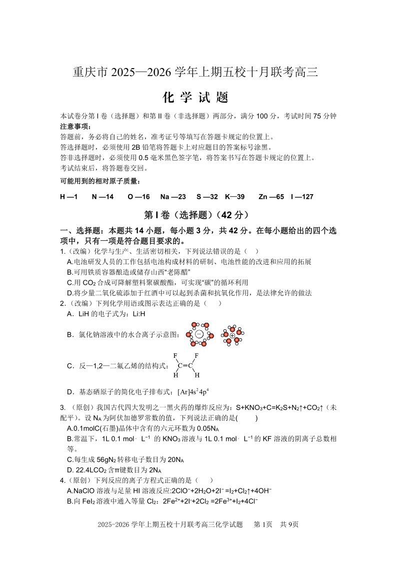 2025-2026学年上期五校十月联考 化学.pdf