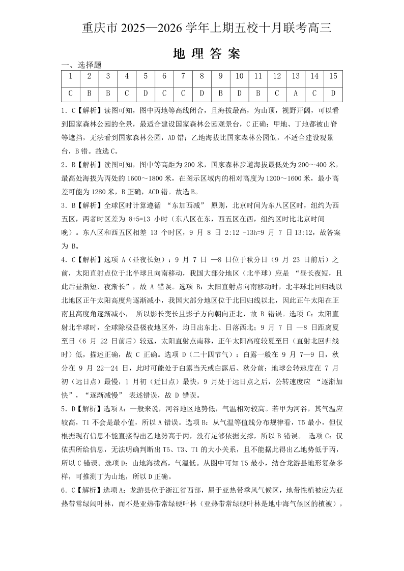 2025-2026学年上期五校十月联考 地理答案.pdf