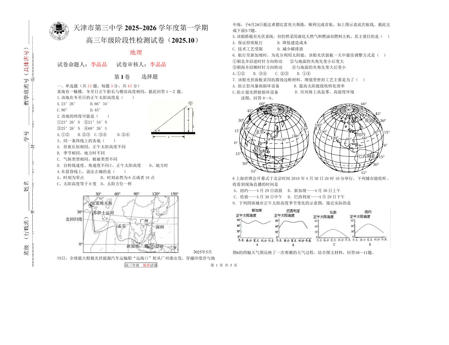 天津市第三中学2026届高三上学期10月月考 地理.docx