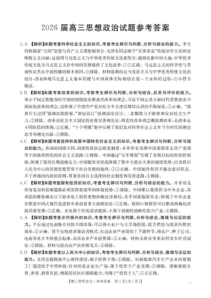 四川省2026届高三上学期10月联考 政治答案.pdf