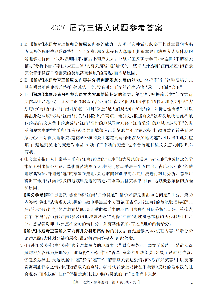 四川省2026届高三上学期10月联考 语文答案.pdf