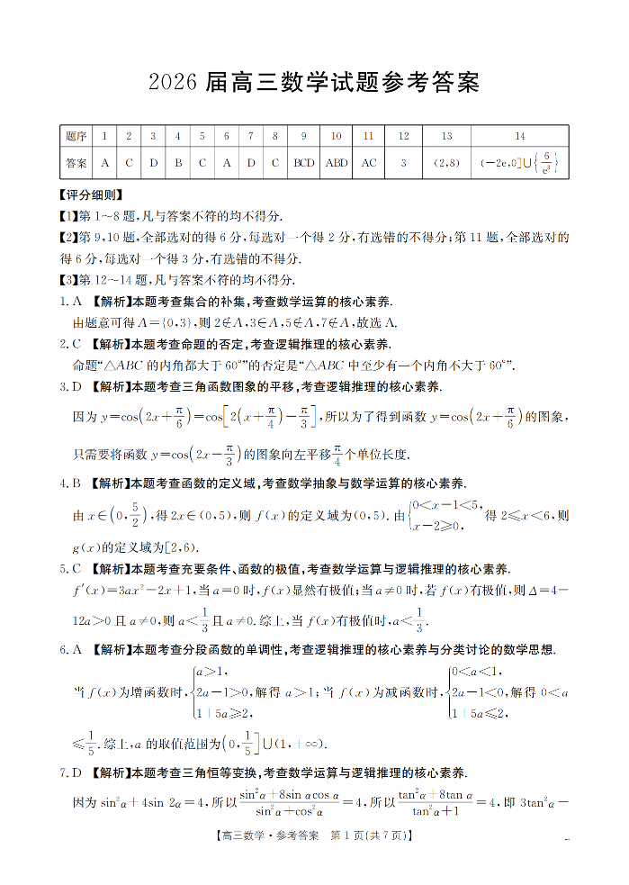 四川省2026届高三上学期10月联考 数学答案.pdf