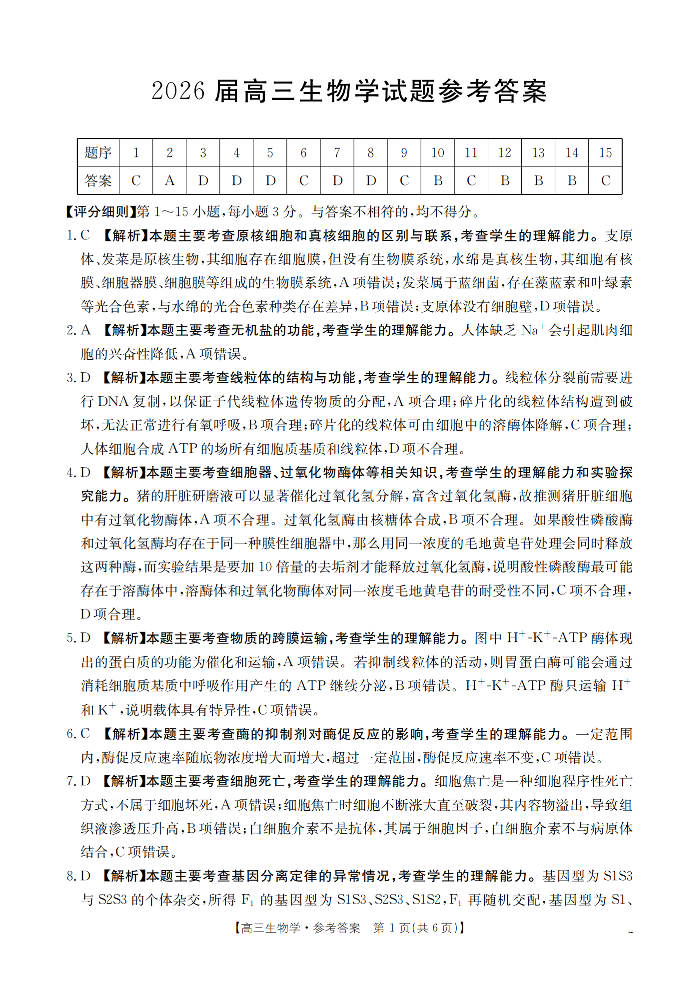 四川省2026届高三上学期10月联考 生物答案.pdf