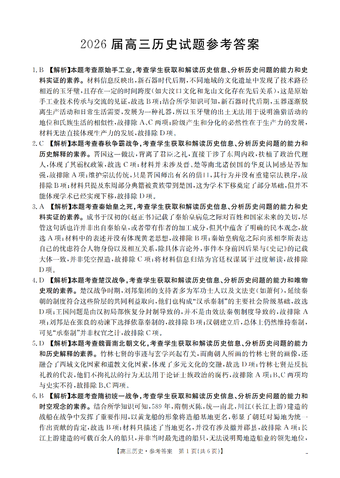 四川省2026届高三上学期10月联考 历史答案.pdf