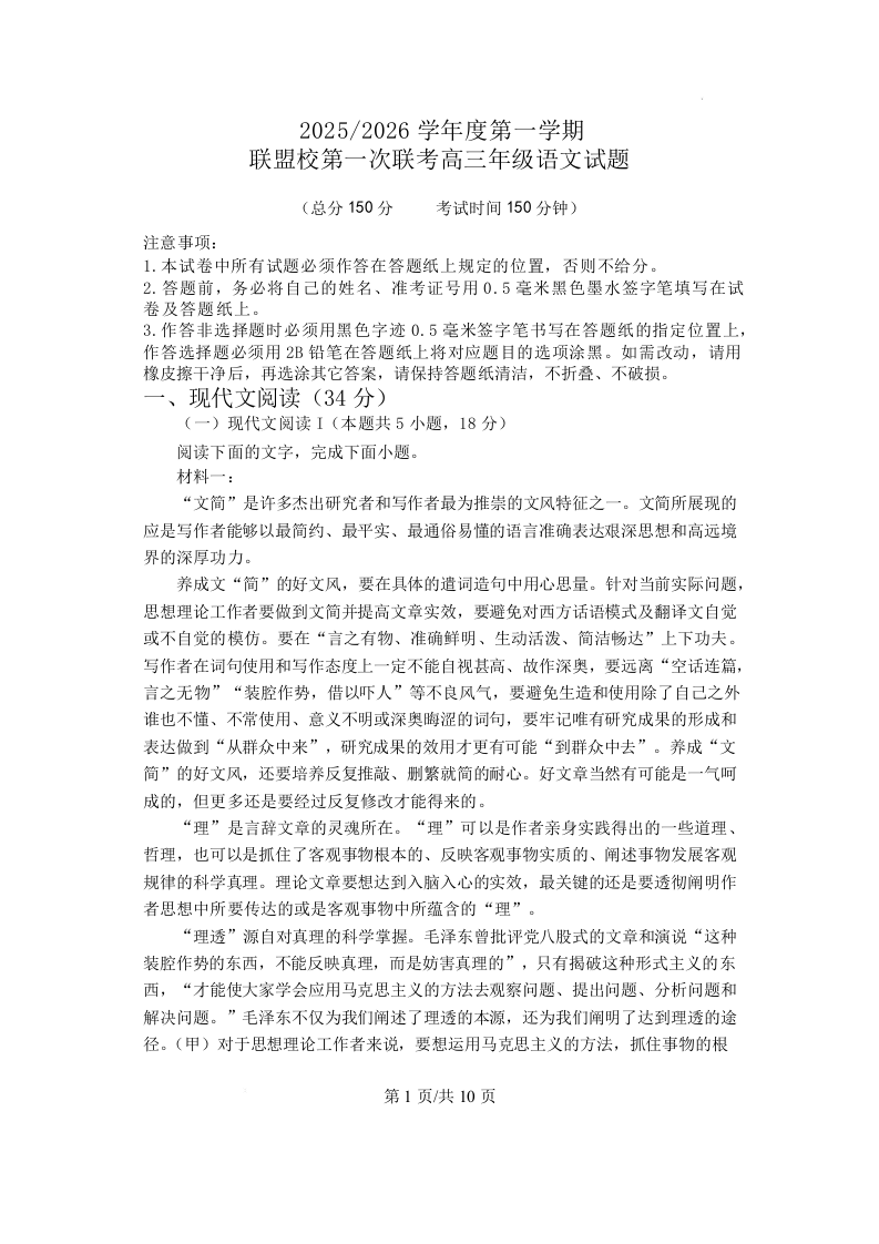 江苏省盐城市五校联考2026届高三上学期10月月考 语文.docx