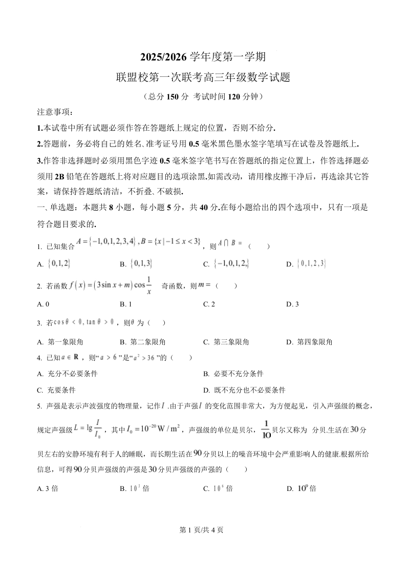 江苏省盐城市五校联考2026届高三上学期10月月考 数学.docx