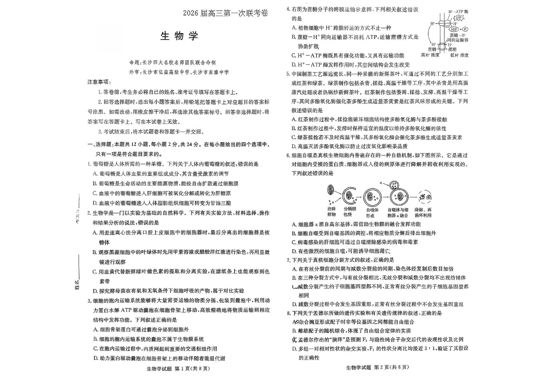 湖南名校联考联合体2026届高三上学期10月月考 生物试题(含答案).pdf