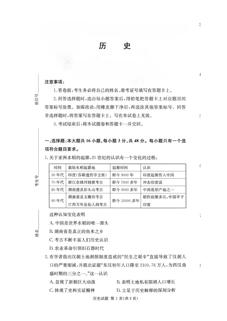 湖南名校联考联合体2026届高三上学期10月月考 历史试题(含答案).pdf