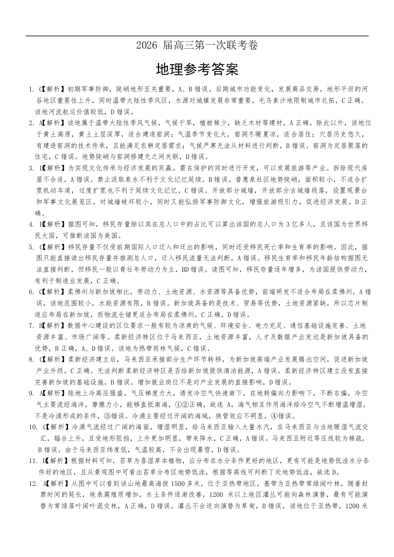 湖南名校联考联合体2026届高三上学期10月月考 地理答案.docx