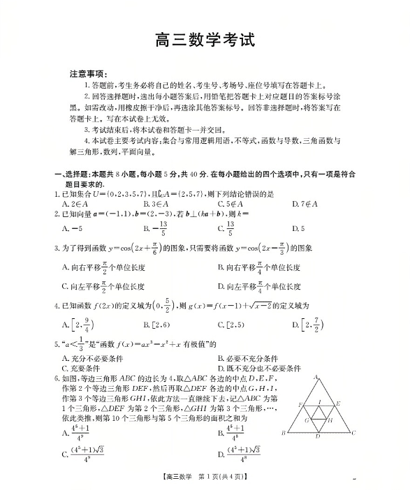 湖北省2026届高三上学期10月联考 数学试题(含答案).pdf