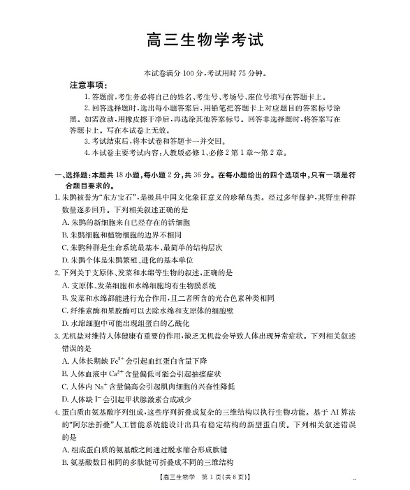 湖北省2026届高三上学期10月联考 生物试题(含答案).pdf