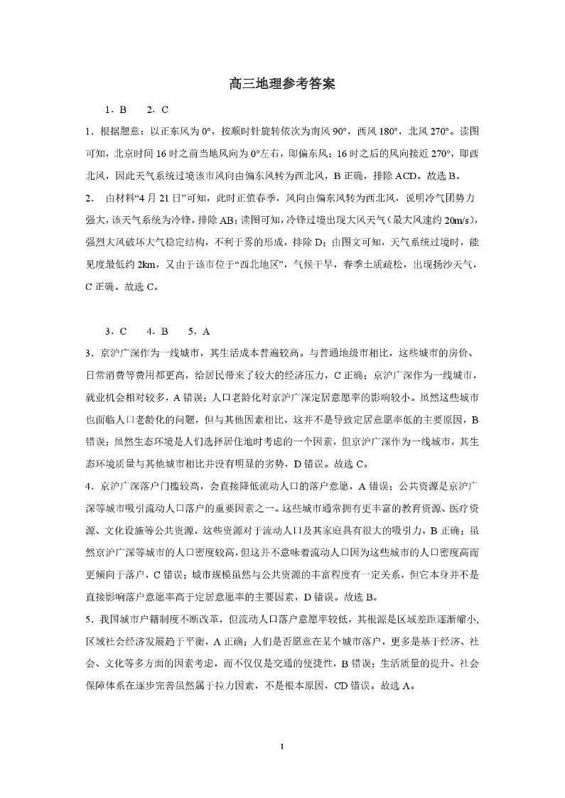 吉林省长春市第二实验中学2026届高三上学期10月月考 地理答案.pdf