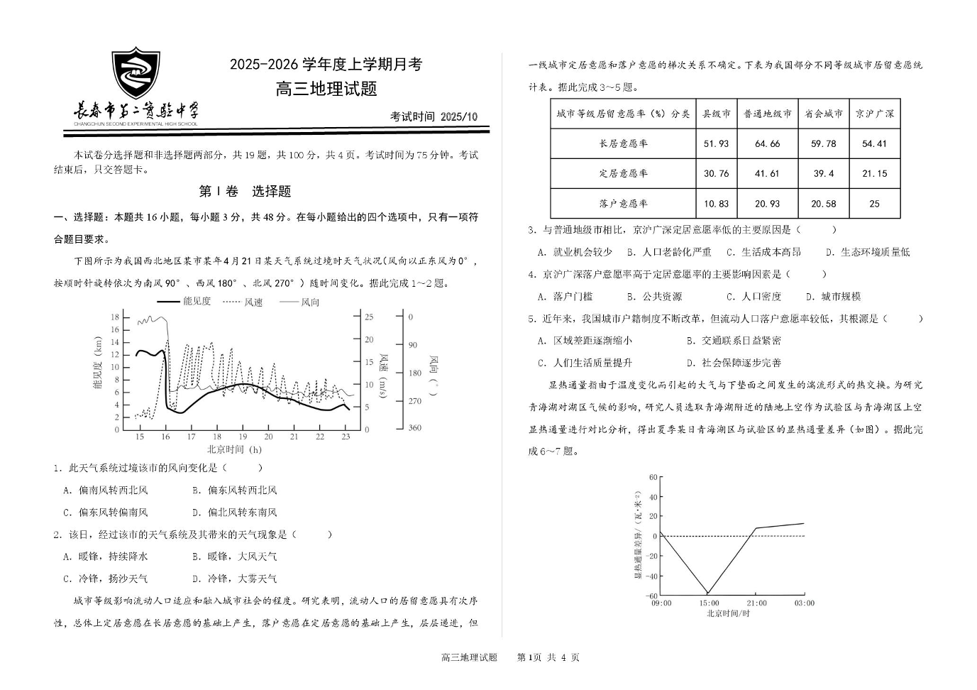 吉林省长春市第二实验中学2026届高三上学期10月月考 地理.pdf