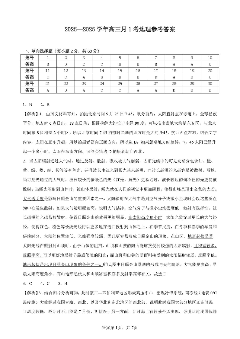 河南省实验中学2026届高三上学期第一次月考 地理答案.pdf