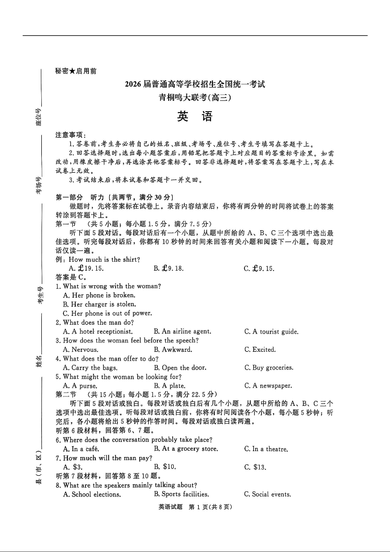 河南省青桐鸣2025-2026学年高三上学期10月联考 英语.docx